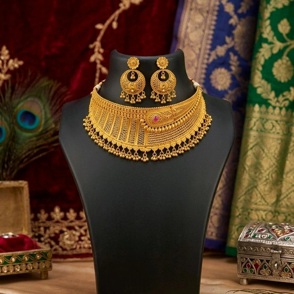 Gold Choker Necklace With Earrings - Pure Gold Layered